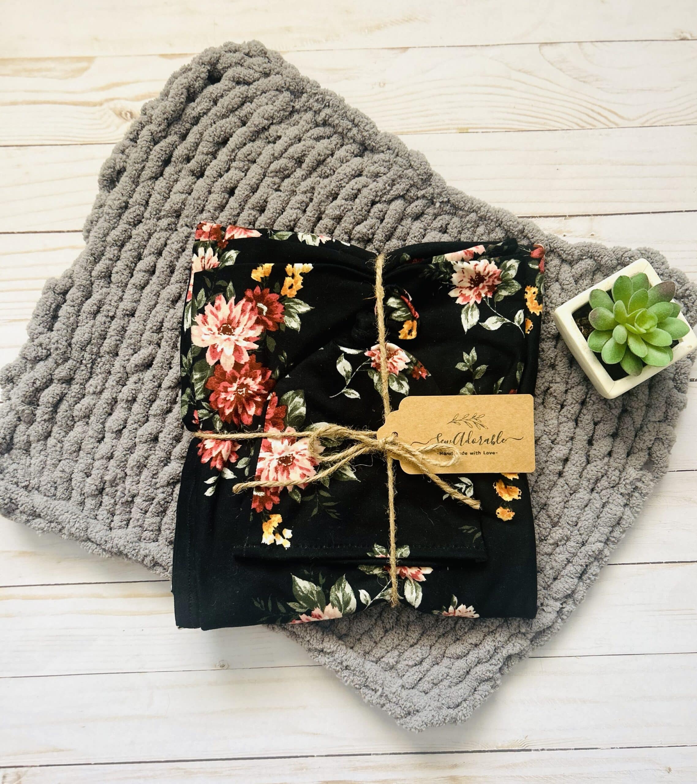 This set comes with a swaddle and a hat.