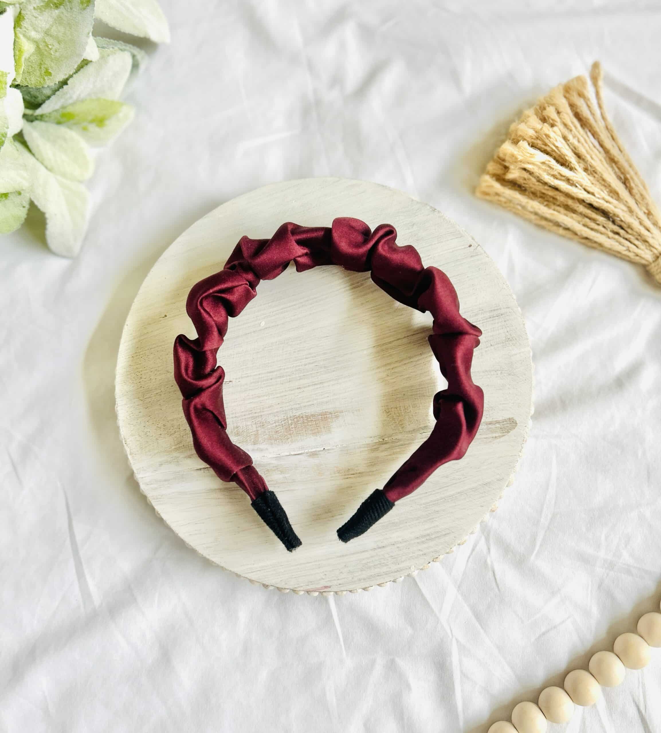 Silk burgundy scrunched headband